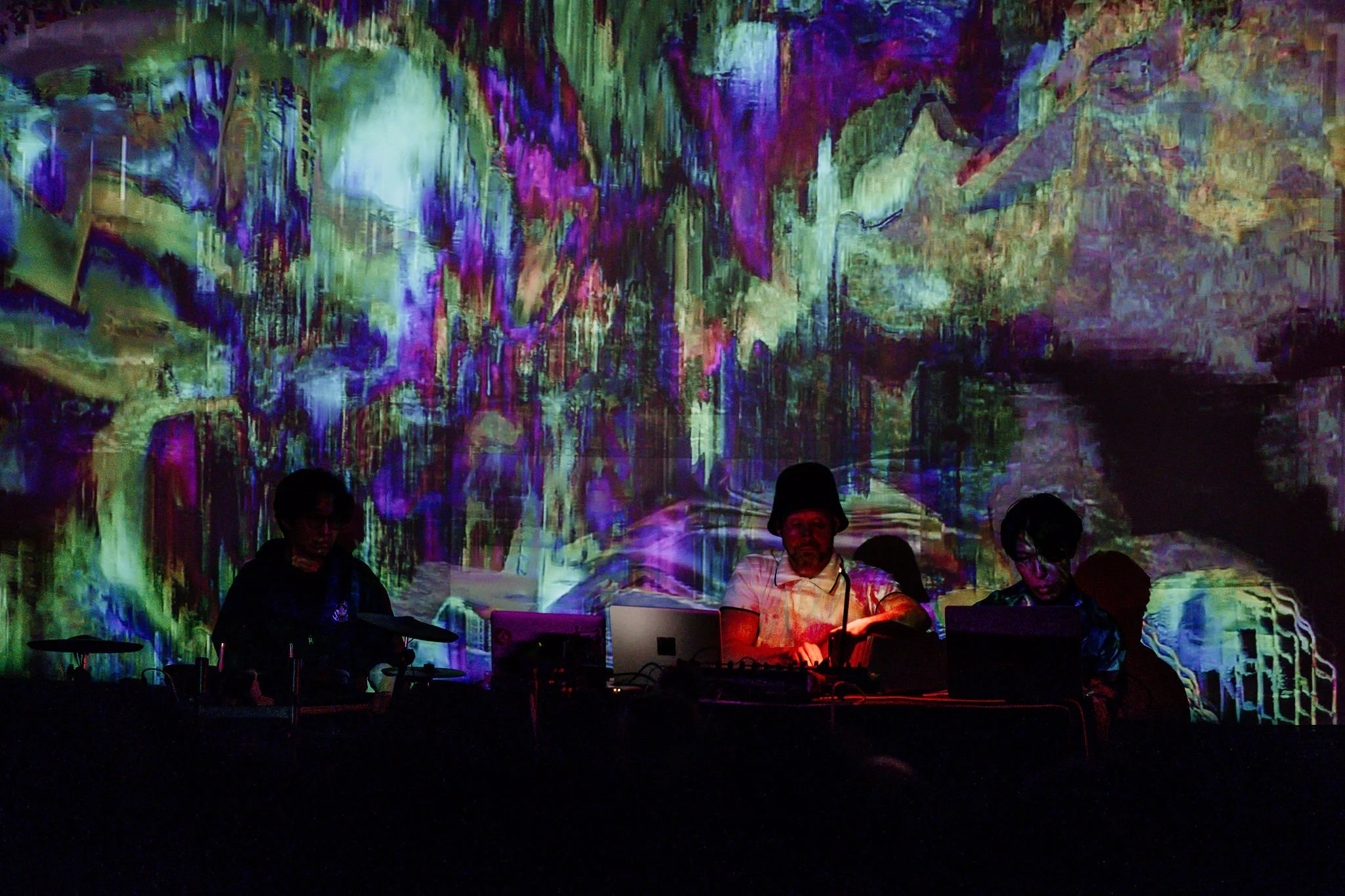 K-Phi-A is a multinational artist collective working at the intersection of interactive art, experimental electronic music, and real-time generative visuals. Rooted in a research-creation approach, the group brings together Philippe Pasquier (Monobor), Keon Ju Maverick Lee (Keon la Nocturne), and Jun Yuri (VJ Amagi), combining backgrounds in media art, co-creative musical AI, electronic percussion, and live audiovisual performance.